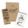 Ces carnets ont été fabriqués à partir de papiers sauvés dans notre imprimerie issus de fins de séries, ils sont donc en édition limitée. Vous avez le choix soit entre soit un carnet to do list avec pages détachables, soit un carnet à spirale, soit un carnet de dessins à pages blanches.