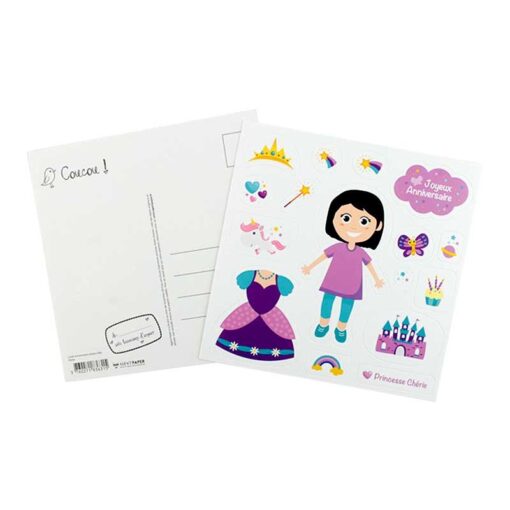 Ces cartes stickers ont une double fonction. Au recto, écrivez un petit message pour souhaiter vos meilleurs voeux à un enfant. Au verso, l’enfant peut décoller les différentes parties autocollantes pour les assembler et créer une scène de contes de fées ou de princesse dans l’un de ses dessins.
