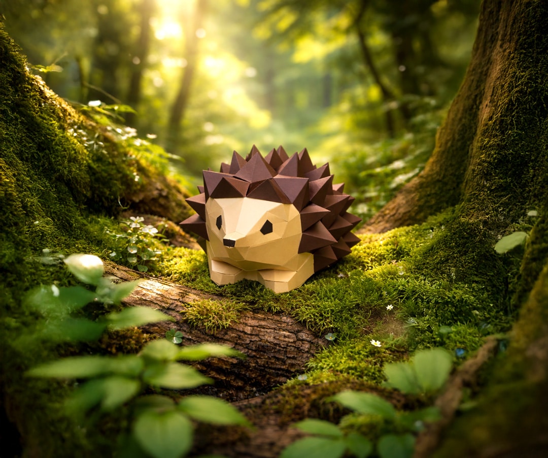 Une petite créature en origami 3D qui ne demande qu’à être adoptée et à vivre de belles aventures aux côtés de son grand copain hérisson