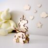 Cette fois-ci elle est de taille vraiment réduite et en bois qui plus est. Mais ne vous fiez pas à sa petite taille, ce p’tit bidule en bois ne tient pas en place. Elle est toujours prête à s’envoler vers d’autres galaxies en laissant derrière elle une traînée de cœurs et d’étoiles (en bois) à travers les nuages (toujours en bois). Elle est incontestablement la plus rebelle de tous les p’tits bidules et aussi la plus belle (selon elle). Si tu n’es pas convaincu(e) peut être que tu vas préférer adopter sa petite sœur…
