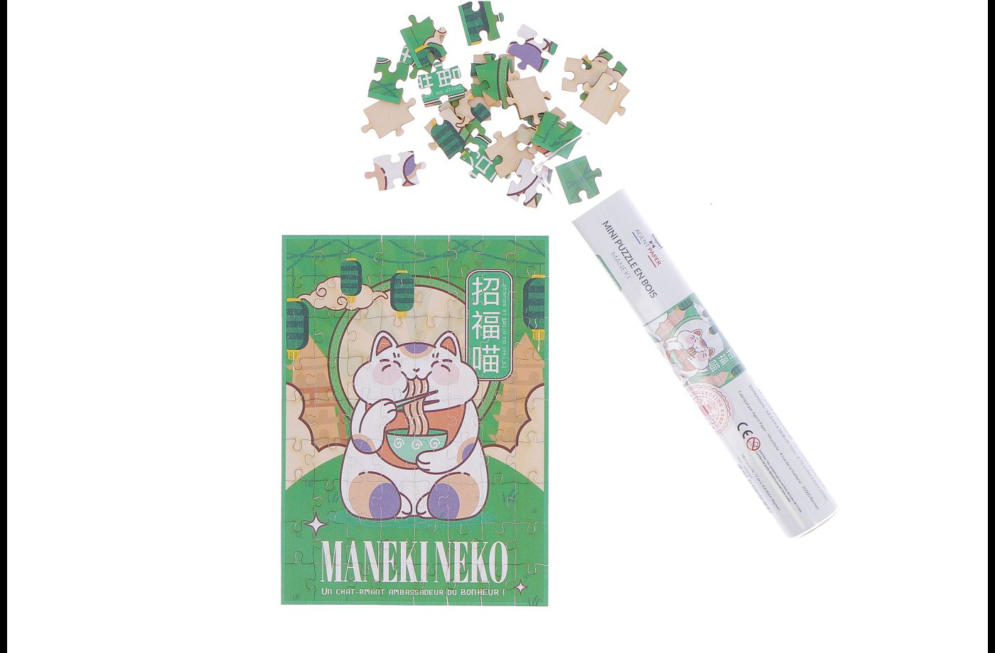 Avec leurs 72 pièces et leur format compact 16,8 × 12,1 cm, ils sont parfaits pour une pause détente rapide et ultra mignonne. Quatre modèles craquants sont au rendez-vous : Maneki Neko, Ramen, Capybara et Sakura. Des illustrations pleines de pep’s, à assembler pour le plaisir… et à exposer si vous voulez. Ces minis puzzles font partie de notre collection Kawaii, qui comprend aussi des carnets cuir A6 et des puzzles 264 pièces, tous déclinés avec les mêmes visuels pour matcher à fond.