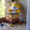 Et n’hésitez pas à vous procurer la petite boite en bois qui va avec (vendue séparément) pouvant lui servir de socle !