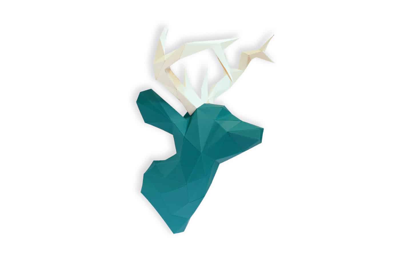 Majestueuse et colorée, cette tête de cerf en papier à monter soi-même apportera une touche design et originale à votre mur.