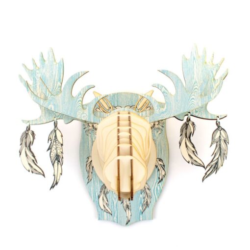 Cet élan en bois a une personnalité particulière. Habitué des défilés de mode et soirées chic, il porte toujours des boucles d’oreille permettant de rehausser ses magnifiques bois. Cet élan viendra parfaitement habiller une pièce dans les tons doux et hivernaux.